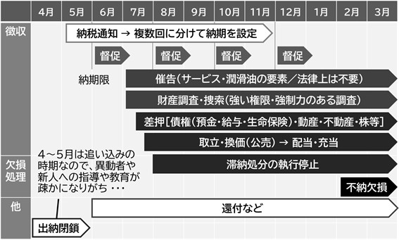 こちらが、ある自治体の納税課における年間の滞納整理業務例です。