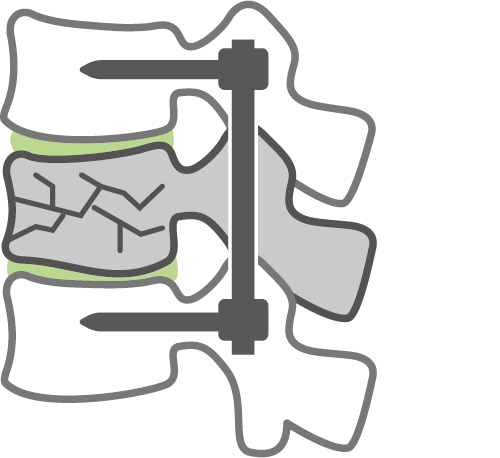 骨折の程度が重い患者や、受傷から比較的長い期間が経過している患者を対象とする。背骨の移植や、金属の器具(ねじ・棒)を使用して背骨を固定する手術を行う。入院とリハビリを伴う。