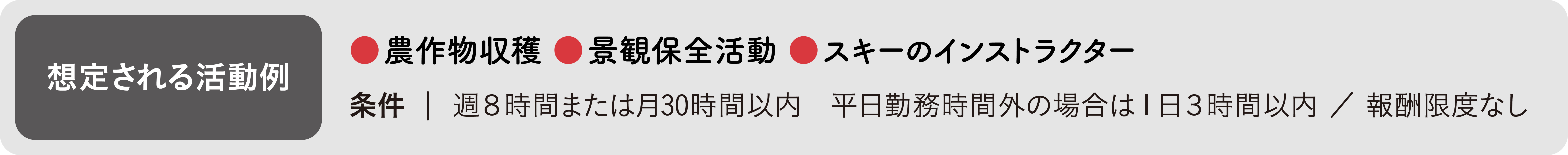 この活動の拡大は、深刻化する人手不足対策の貢献につながるなど、地域住民にとってもメリットのあるものです。令和4年3月には、職員がより積極的に制度を活用できるよう活動の具体例を明示し、要件を変更するとともに、従事可能時間の上限を設定しました。この変更点については同年4月から適用されています。要件などの変更により、例えば長野の特産品である農産物を生産する農業従事者のもと、農作業にも携われるようになりました。