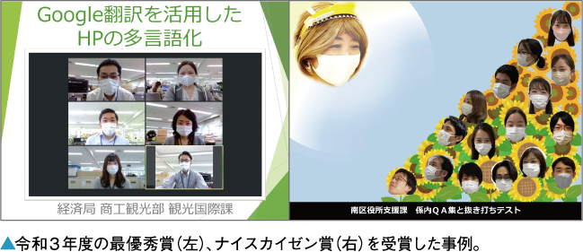 職員の意識を維持するため、多くの課で再現できる事例は、定期的に「カイゼンニュース」を発行して庁内に共有している。さらに、民間企業の経営者などと一緒に優秀な事例を審査し、市長が表彰する「カイゼンさいたマッチ」を毎年開催。10年以上続く取り組みの成果として、全庁で時間外勤務が減少傾向にあるという。「管理職も率先して実践することで、各自が楽しみながらも、より責任をもって業務に取り組むようになりました。市民サービスの向上にもつながっています」。事例は同市ホームページから確認できるので、ぜひ参考に。