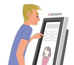 職員の負担軽減と市民サービスの向上を図るため、庁舎正面玄関カウンター前にサイネージを設置して、行き先案内を自動化。英語や中国語、韓国語などの多言語にも対応しているため、市内在住の外国人への案内もスムーズになった。