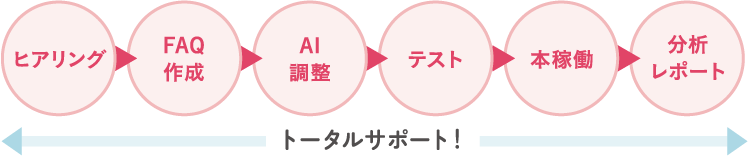 専属のサポートデスクが用意され、担当職員が管理画面内のチャットルームから質問すれば、サポートスタッフが即日対応。FAQ作成からテスト運用、ハードウェアのトラブルまで丸ごとお任せできる。データ分析・改善提案までも支援し、運用をサポート。