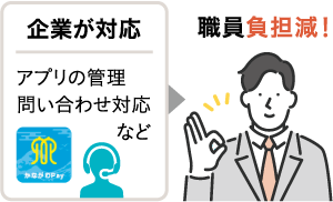 住民向け・加盟店向けのアプリなど、システム全体を一気通貫で提供。問い合わせなどには協働企業が応じるため、取り組みにおける自治体の負担を軽減する。