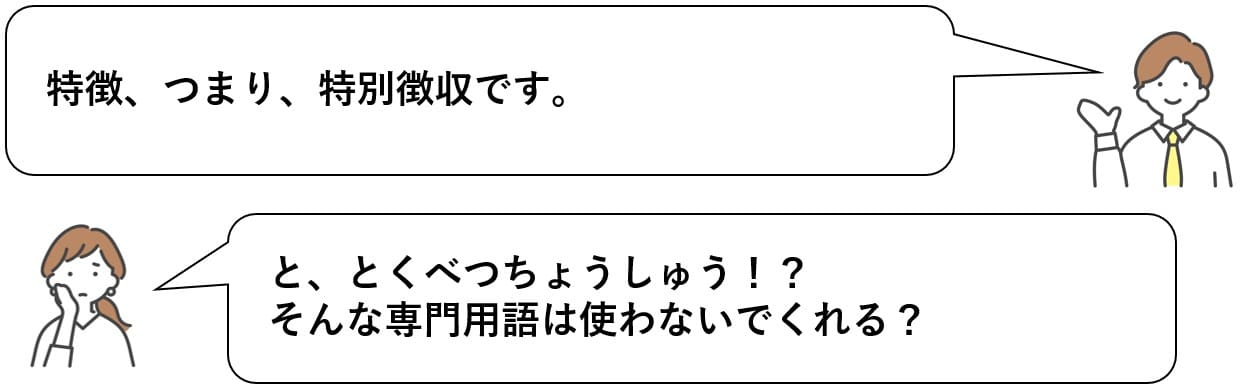僕は、正直、驚きました。特別徴収が専門用語だとは思っていなかったからです。職場で当たり前のように通じる言葉なので、誰にでも通じると思っていました。