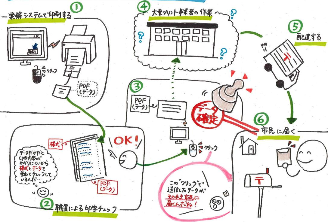 【令和の印刷環境に適合した通知書等発送業務の流れ】