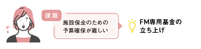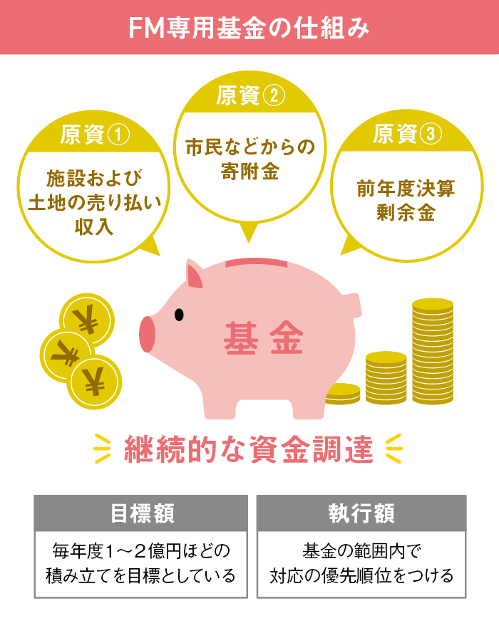 FMにかかる予算を基金で運用し、適切かつ妥当な施設保全を行う。