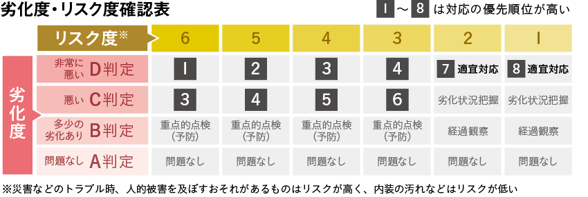 築年数や規模に関係なく、劣化度や重要度に応じた基準を設け、優先順位を点数化することで客観的に評価できる仕組みを構築している。明確な判断基準をもつことで、属人化しない運用となっている。
