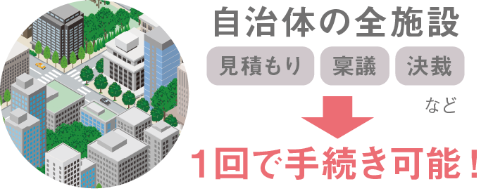 数百単位の施設をまとめて見積もるには大変な時間と労力が。自治体ごとに一括で行うため、手続きが1回で済み、職員のマンパワーも時間もかからない。