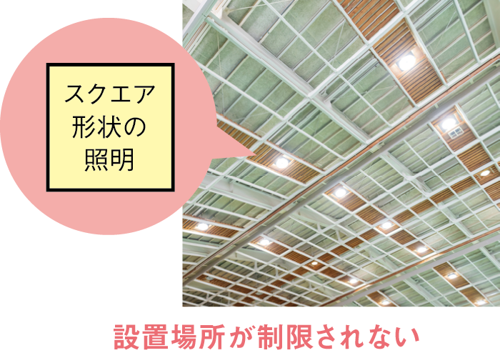 DNシリーズでは、先にアームを天井に取り付けられるように、本体とアームを分離した。アームのみなら軽量で、電動工具も使える。最後に本体をはめ込むため、少ない負担で安全に施工できるという。また、形状を正方形にしたことで、方向や場所に制限されずに施工できるようになっている。これらの利点は台数が多くなるほど活かされ、作業効率の向上につながるという。