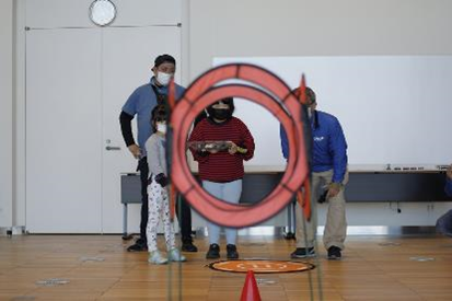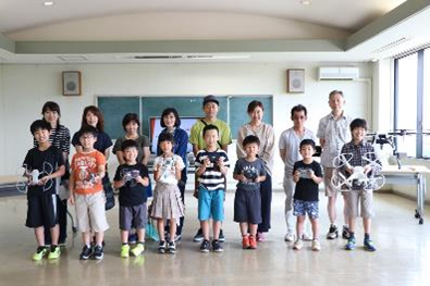 これまで、地元公民館主催の夏休み子ども教室のメニューとして、“親子ドローン教室”を開催し、地域の子どもたちの夏休みの思い出として、トイドローンの操作を体感していただきました。この取組にあたっては、定員8組16名であったところ、募集直後から応募が多数あり、定員を大きく超える30組以上の親子から申込みがあり、大変好評でした。