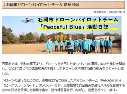 ●ドローンパイロットチーム「Peaceful Blue」活動日記【具体的な取組を紹介:石岡市ホームページ】