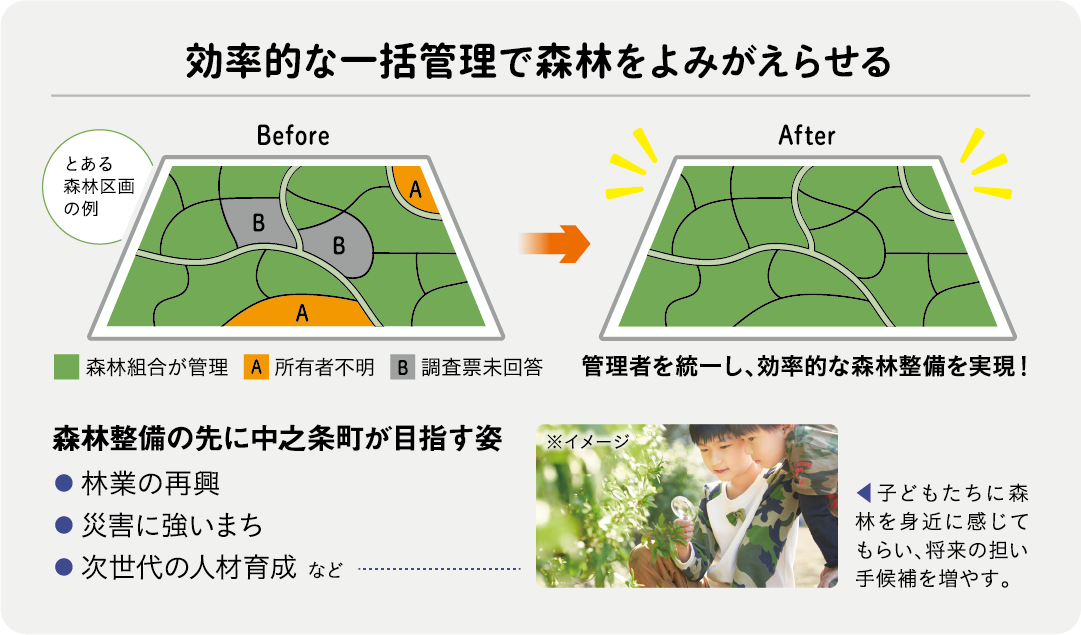 所有者に代わって自治体などが森林を整備・管理する「森林経営管理制度」。放置森林をなくそうという制度だが、それには所有者の同意が必要となる。そこで、中之条町では所有者に意向調査票を送付。その回収を「東電用地」に委託したという。