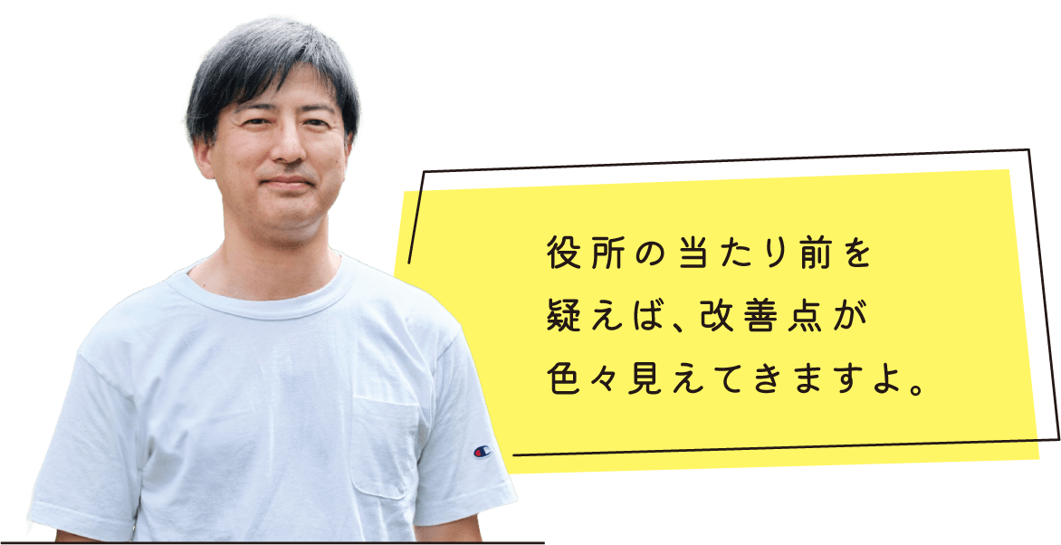 同前 異動が多いからこそ、マニュアルをつくれば業務を覚えやすいし、後任者の役に立つ。でも、その時間がもったいないとか、面倒だとか思われてしまう。だから、異動する先々に改善点があって。民間だったら「こうしてみよう」と話し合うけど、役所にはそういう場や、先行投資という発想がほとんどないですよね。