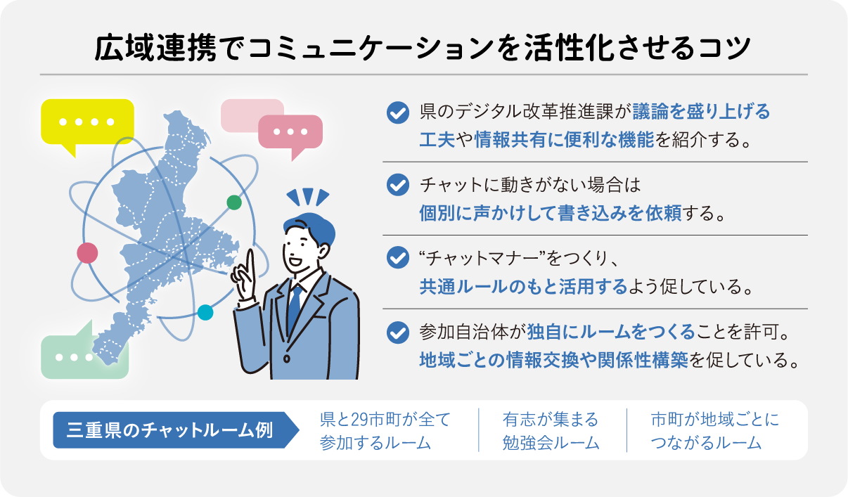 様々なシーンで活用が進む同サービス。「全市町が参加した会議で、質問をチャットのみで受け付けたことがあります。チャットなら発表者のプレゼン中も質問できて、質問する心理的な負担も軽い。リモートでの参加者も気軽に質問していました。また、県では市町だけでの連携も推奨しており、実際に近隣自治体だけでつながる動きも出ています」。