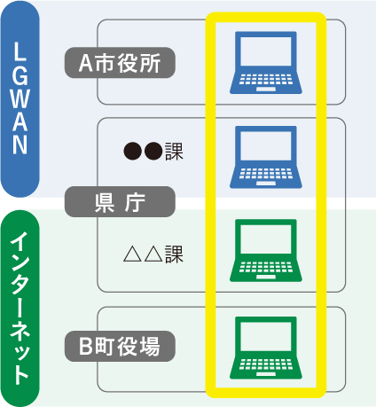自治体・部署ごとにネットワーク環境が異なっても、問題なく連携可能。