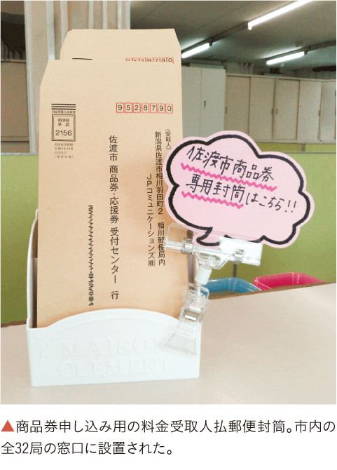 なお、届いた申込書のデータチェックに関しては、市内の相川郵便局内に受付センターを設置。オートロック機能のある部屋でセキュリティに配慮し、申込書の記載内容に不備がないかのチェックが行われた。この作業には、市内在住の郵便局長OBに協力を頼んだという。大量の書類を短期間で正確にチェックできたのは、長年の経験をもつOBがいたからこそだといえるだろう。