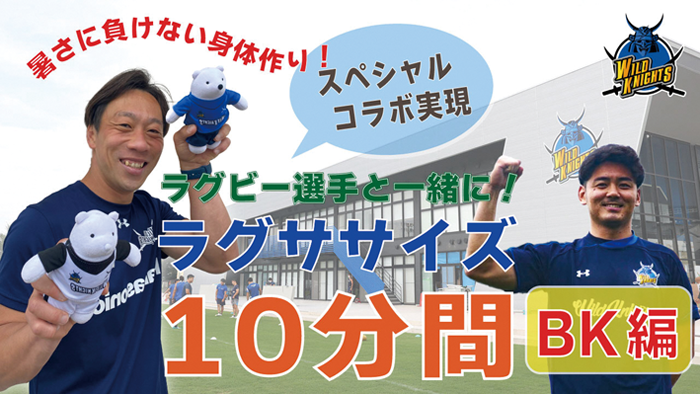 動画には、「FW(フォワード)編」と「BK(バックス)編」があり、実際にチームの選手が出演して、それぞれ6つの動きを紹介。エクササイズは負荷を自分で調整できるように工夫されており、子どもから高齢者まで幅広い世代が自宅で気軽に取り組める運動であることが大きな特徴。動画の中では水分補給や休憩を促すシーンもあり、安全にも配慮されている。