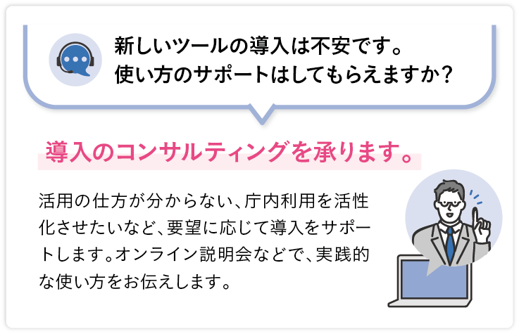 導入を検討中の自治体にとっては、ほかのツールとどう違うのか気になる点も少なくないだろう。寄せられることの多い質問に、担当者から回答してもらった。