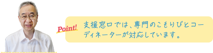 ひきこもりの状態にある人は、かつては若い世代に多かったが、近年は中高年層を含む幅広い年代に見られるという。大和市では令和元年、ネガティブなイメージをもたれる風潮にあったひきこもりに、“こもりびと”という独自の呼び名を付けた。ひきこもりは誰にでも起こりうる問題であるという認識のもと、当事者に寄り添いたいという思いから、よりぬくもりが感じられる呼び名にしたという。同年、「こもりびと支援窓口」を開設。令和4年には、「こもりびと支援条例」を制定した。