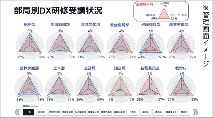 加えて、受講状況を部局・所属ごとにモニタリングできる体制を整えているのもポイントだ。「受講状況を可視化し、どの研修を受けているかが所属単位でひと目で分かるので、職員の意識付けや部局に対する履修促進がしやすくなりました」。