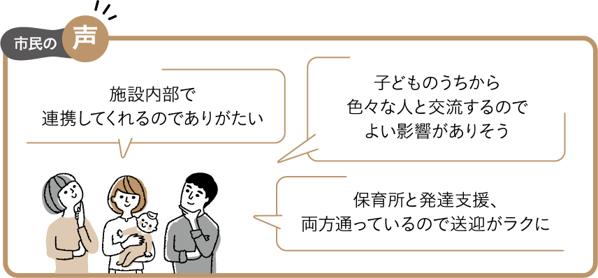 また、スタッフのサポート体制にもポジティブな効果があらわれているようだ。「スタッフの事務所は、通所系・入所系それぞれ1部屋ずつとなっています。保育所と児童発達支援センターのスタッフが気軽に相談し合うなど、リアルな横連携ができているようです」。子どもを預ける利用者からも“以前よりサービスが充実してありがたい”と好評だ。