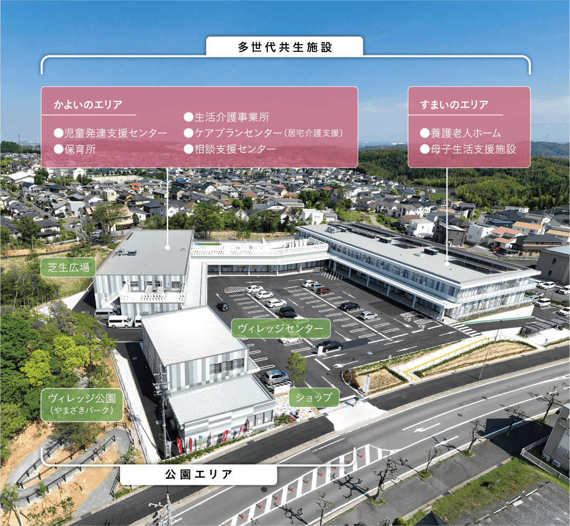 このように、いくつもの壁を3者が協力して乗り越え、桑名福祉ヴィレッジが完成。以前よりも機能を強化した児童発達支援センターと保育所、母子生活支援施設、養護老人ホームなどを統合し、令和4年4月にオープンした。