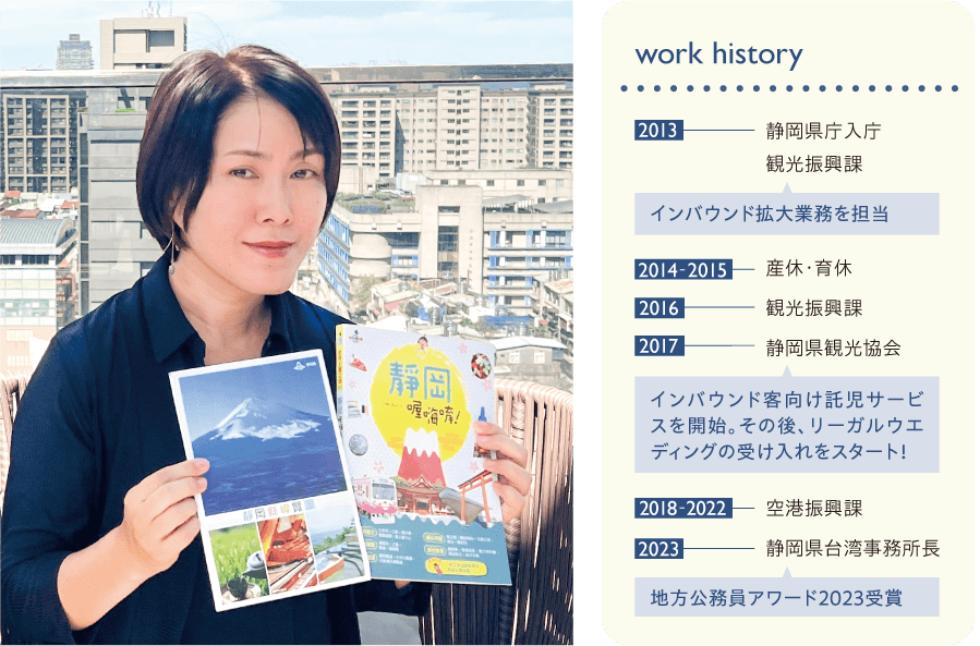 もともと民間企業で働き、北京に5年半ほどの駐在経験があった市川さん。静岡県庁入庁後はインバウンド担当となり、現在は台湾事務所長を務めている。一見華やかに活躍しているように見えるが、試行錯誤の連続だという。
