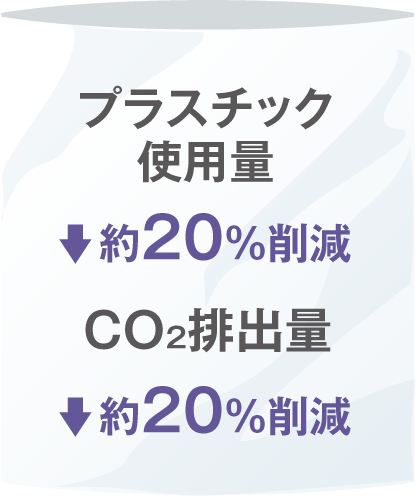 ポリエチレン100%のごみ袋と比較し、CO2排出量は約20%、プラスチック使用量も約20%削減できる。削減効果としても定量的に分かりやすく、各自治体の削減目標に貢献する。