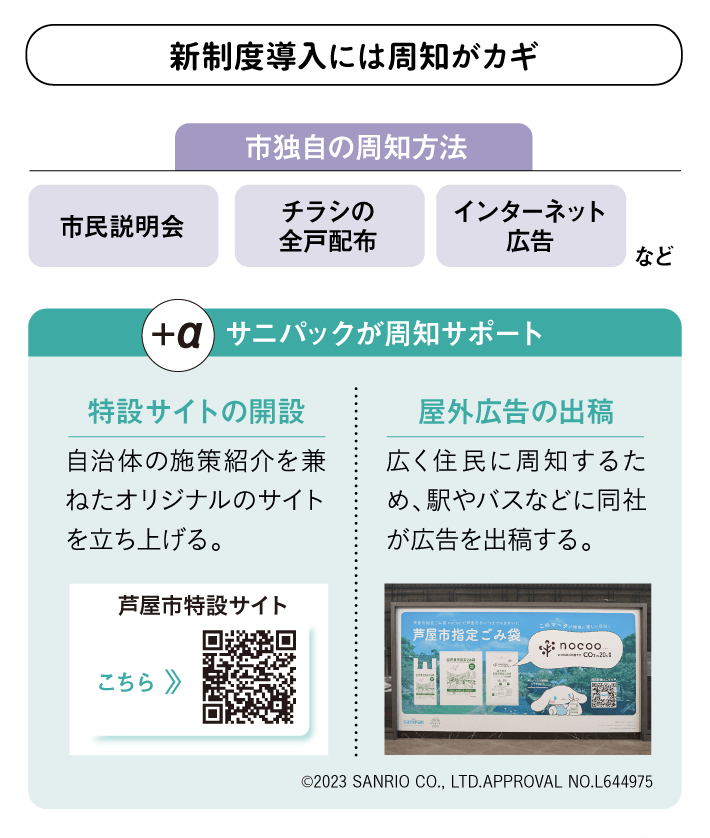 順調な滑り出しには、制度開始前からの地道な啓発活動が功を奏したようだ。周知のため、広報紙やごみカレンダー、チラシの全戸配布をはじめ、市民説明会は要望があれば休日でも出向いた。若年層を想定して、インターネット広告も活用し、幅広く情報が届くように工夫。「当市のコストは不要で、同社が主要駅に屋外広告を出稿したり、特設サイトを用意したりしてくれたのも、ありがたかったですね」。