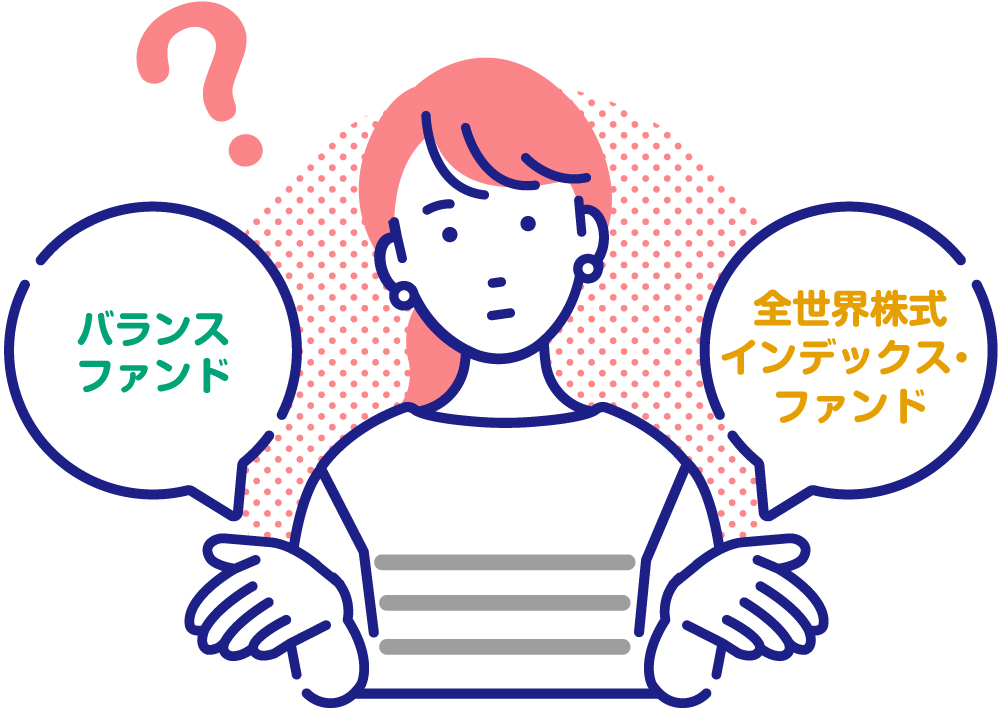 ですから、例えば、リスク許容度が低い場合は国内外の株と債券の4資産に投資する投資信託(バランスファンド)、積極的にリスクが取れるのであれば、全世界の株に投資する投資信託(全世界株インデックス・ファンド)という具合に投資先を選ぶことで、リスク許容度に合わせた投資ができます。