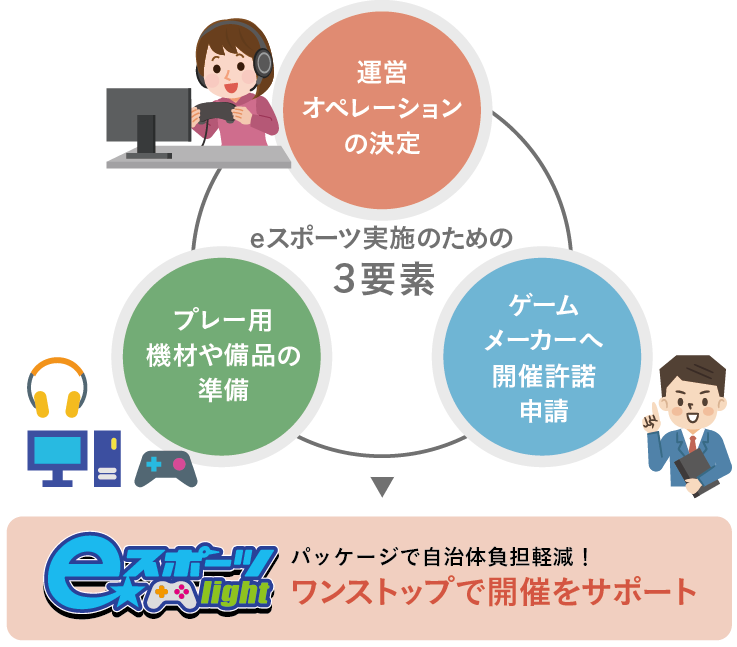 令和7年には、210億円超の市場規模※2が見込まれているeスポーツ。「自治体開催の大会がメディアに取り上げられ、自治体PRになる事例も見かけるようになりました。まずは小さい規模からでもいいので、始めてみることが大切ではないでしょうか」。企画から運営まで丸ごと頼めて予算を抑えられる同サービスを活用すれば、初めの一歩が気軽に踏み出せるのではないだろうか。