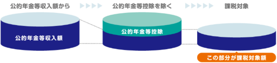 一方で、年金での受け取りは、その年に受け取ったiDeCoの年金と公的年金等の年金の合計額から下記の公的年金等控除を差し引いた額が課税対象となります。
