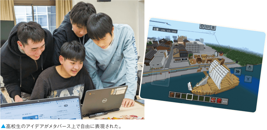 運営は外資系コンサルティング会社の「アクセンチュア」や地域運営団体と連携。オンラインゲーム上に、市の観光名所である「東尋坊」「丸岡城」「三国湊」を再現した。部員25人がデジタル空間上で地域のさらなる活性化施策についてアイデアを出し合い、毎週1回の部活動でブラッシュアップを重ねた。また、オリエンテーションや現地フィールドワーク、合宿なども実施。企業のグローバルメンバーと交流する機会も設け、地方にいながら海外とつながる経験をしてもらったという。