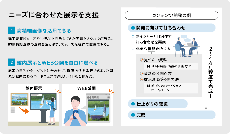 また同館には、コロナ禍に導入した55インチの電子黒板があったが、タッチパネルなどの機能を活用できていなかったという。そこで、デジタルコンテンツのビューア制作を手がける「ボイジャー」のソリューションを活用することになった。同社は高精細画像を詳細に表示できる技術が強みだ。