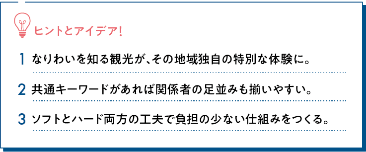地域に根付いた“なりわい”を少しの工夫で観光資源に。