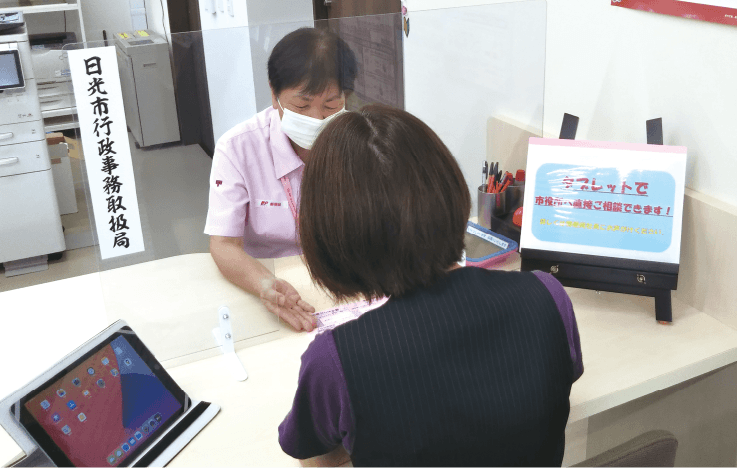 郵便局は、全国に2万局以上あります。単純計算で1自治体に10局以上です。人口減少に伴って、行政サービスの拠点を縮小する自治体もある中、郵便局の人的資源を活用する動きは、様々な自治体に広がっています。例えば、マイナンバー関連事務や公的証明書の発行、市役所と住民をデジタルでつなぐ支援活動など、地域の状況に応じたサービスを提供。過疎化が進む地域でも、住民の利便性が損なわれないよう努めています。