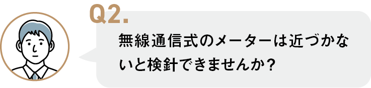 A. 電波を拾える距離まで近づく必要はありますが、受信できる距離も地域特性に合わせ、比較的自由に設定できます。また、無線通信式であればランニングコストをぐっと抑えて運用できます。