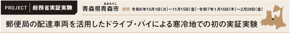 県庁所在地の中で最も年間降雪量が多い青森市なら、寒冷地特有の課題に対する検証ができると判断し、実証実験を行うことにしました。総務省では「郵便局データ活用推進ロードマップ」において、“日本郵便がもつ配達ネットワークを活用したデータ活用について、公的要請に応える取り組みについては、優先的に取り組むべき”としています。