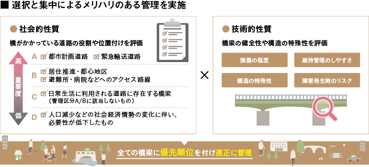 メリハリのある対応を実施することで、一つでも多くの橋梁を未来に残す。
