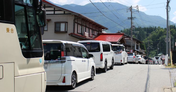 委員会は従来おおむね年4回だったが、令和6年度は年6回に拡大。世界遺産集落内の観光車両の侵入抑制対策や私有地の無断駐車などの交通対策を広く検討している。さらに同年度、観光庁のオーバーツーリズム対策の補助金を使い、交通渋滞の状況を観光客に伝える情報サイトの開設も予定する。混雑予測を事前発信し、車両の集中を分散するねらいだ。