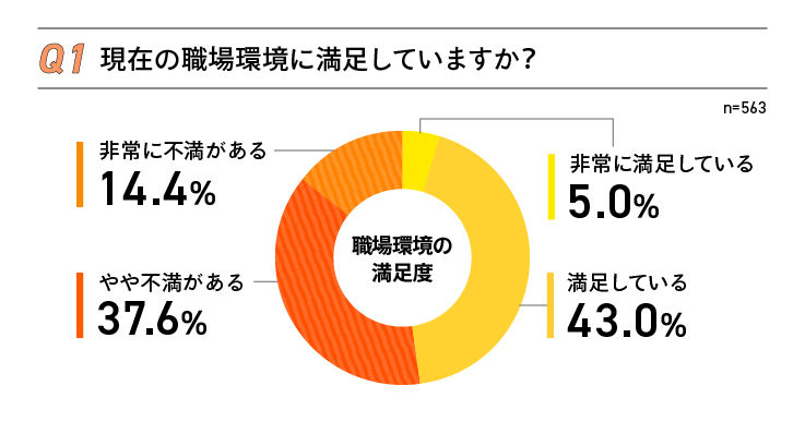 「非常に不満がある」「やや不満がある」が合わせて52%を占めており、多くの職場が職場環境の課題を抱えているとみられる。