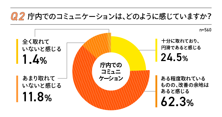 コミュニケーションが「取れていない」「改善の余地がある」との回答が計75%におよび、対策の必要性が浮き彫りとなった。