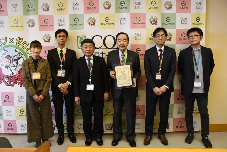 ▲ 「ホワイト500」市長会見で認定報告後の写真。自治体では唯一の認定を3年続けて実現した。