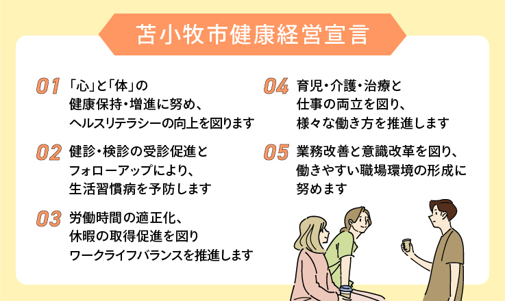 同市が「苫小牧市健康経営宣言」を出したのは令和3年。この宣言は、職員の“ヘルスリテラシーの向上”等を掲げ、健康経営と働き方改革の一体的な推進を目指したものだと出雲さんは語る。