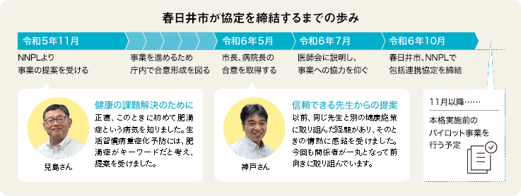 提案を受けた後、兒島さんは部内で相談。この話を聞いた部長の神戸さんはこう振り返る。「前例がなくても、意義のある事業は積極的にやった方がいい。健康課題の解決に先駆的に取り組むなら、このチャンスを逃さずに進めるべきだと判断し、すぐに副市長に事業のプレゼンを行うことにしたのです」。