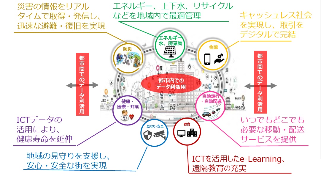 交通、エネルギー、防災、医療、行政サービスなど多様な分野にデジタル技術を導入し、自治体が主体となって住民の生活の質(QOL)向上や地域経済の活性化を図る点が大きな特徴だ。