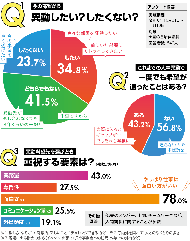 今年度も残りわずか。年度末は“異動”が気になる時期ですね。この企画ではアンケートをもとに、自治体職員の異動に対する思いを集めて数値化。「あるある!」「まさか!」など、隣席の人とワイワイしながら読んでみてください。