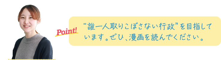 漫画を読んだ市民や庁内職員から、“どんな仕事なのか初めて知った”“分かりやすかった”との反響が。近隣自治体の保健師からも、“もっとこういうことも描いてほしい”とリクエストが届いているそうだ。「理解が深まることで、保健師を目指す人が増えるきっかけにもなれば」と、期待を込める。