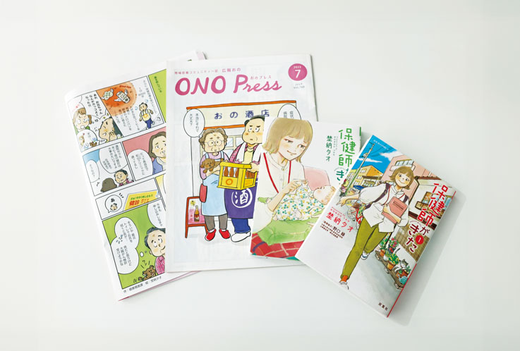 行政保健師が奔走する漫画「保健師がきた」が話題だ。小野市市民福祉部の保健師たちが主人公のモデルになっており、住民に寄り添い支える日々が細やかに描かれている。作者は、市在住の漫画家・埜納(ののう)タオさん。令和3年、コロナ禍で奮闘する保健師たちの姿を見て関心をもったという。“保健師という仕事を知りたい”という取材依頼に、同市は快く応じた。「保健師は、人情味あふれる仕事。漫画を通して、魅力ややりがいをぜひ多くの人に知ってもらいたい」と長谷川さんは語る。