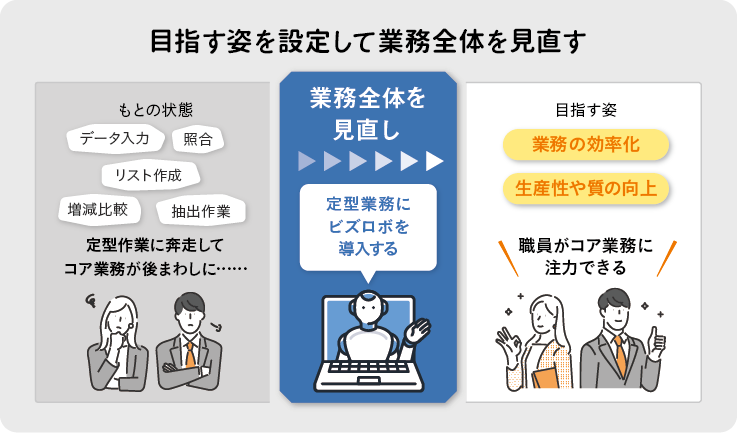 「運用後のアンケートなどで様子を見て、適宜フォローをしています。また、職員が異動しても使われるよう、RPAの活用を織り込んだ業務マニュアルをつくってもらうことも重要です」。今後はより現場に近い“DX推進リーダー”を任命することも検討中だとしつつ、「効率化で創出できたリソースを、職員にしかできない業務に充てていきたい」と展望を語ってくれた。